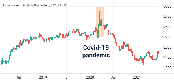There are other factors that can push the US dollar higher or pull it lower. For example, policies by the US legislature have an impact on the currency. In response to the Covid-19 pandemic, Congress decided to provide free money to individuals. This, in turn, led to more funds supply, which led to a weaker US dollar.