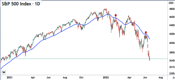 The opposite of selling the rally is known as buying the dip. Buying the dip is when you buy an asset when it makes a pullback. The two points shown below shows potential areas for shorting the S&P 500 as it dropped.