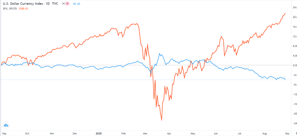 Also, there is an inverse relationship between the dollar and the US treasuries for the same reasons. On the other hand, the dollar tends to move in the same direction with the US key indices such as S&P and Nasdaq.